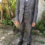 The suit isn’t as sharp as it once was. More than six months of wearing it daily wherever I went, washing it regularly, doing things that left stains I couldn’t remove, made it look worn. But that was the whole point.