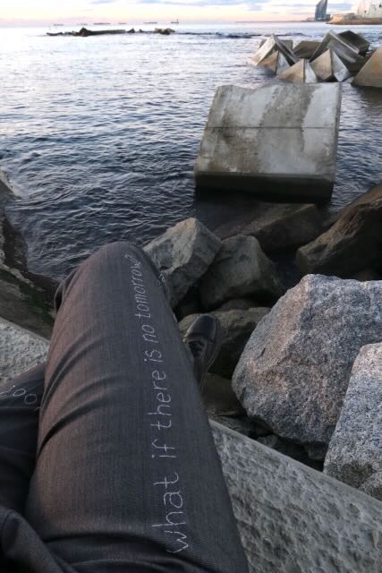 I don’t have a favourite question but every time I sit down somewhere and cross my legs comfortably, I see ‘What if there is no tomorrow?’. I like that question because you can interpret it in two ways. On the one hand it reads like a memento mori: none of us are going to live forever, or at least not the way we are used to, in a human body that is inseparable from our brain. Would you have any regrets if you knew would know today was would be your last day? Are there things you haven’t done that are important to you? Did anything remain unsaid that should have been communicated? Did you live enough, love enough, enjoy enough, care enough?